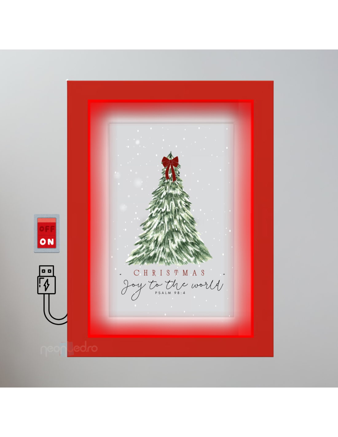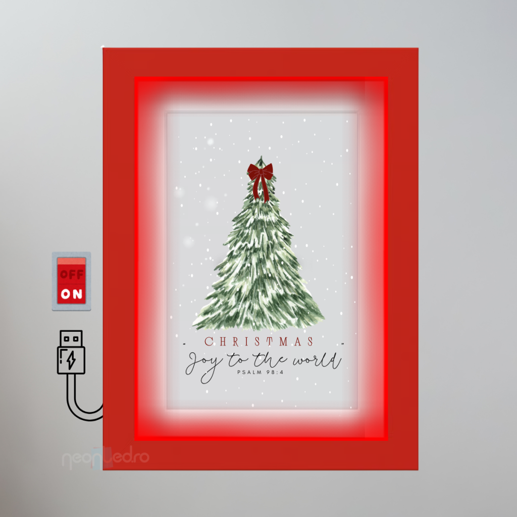 Acum este atât de ușor să creezi magie în casa ta cu un TABLOU LED, și hai să fim sinceri, ai mai văzut undeva un astfel de produs? Alege-l pentru casa ta și adaugă emoție Crăciunului cu un verset din Biblie, care luminat transmite și mai multă încărcătură emoțională. Tabloul se alimentează la priză, acesta fiind dotat cu un cablu USB și funcționează prin conectarea la un încărcător USB standard (ex. încărcător de telefon).